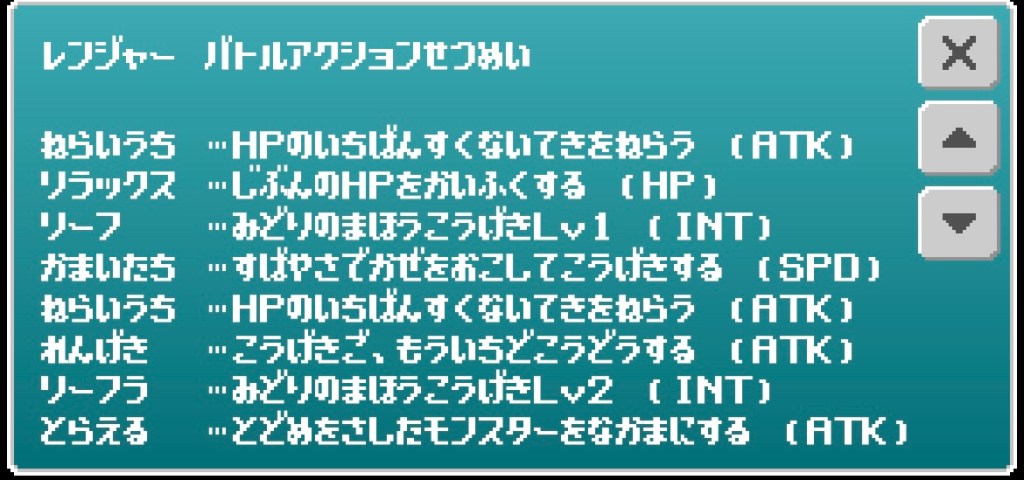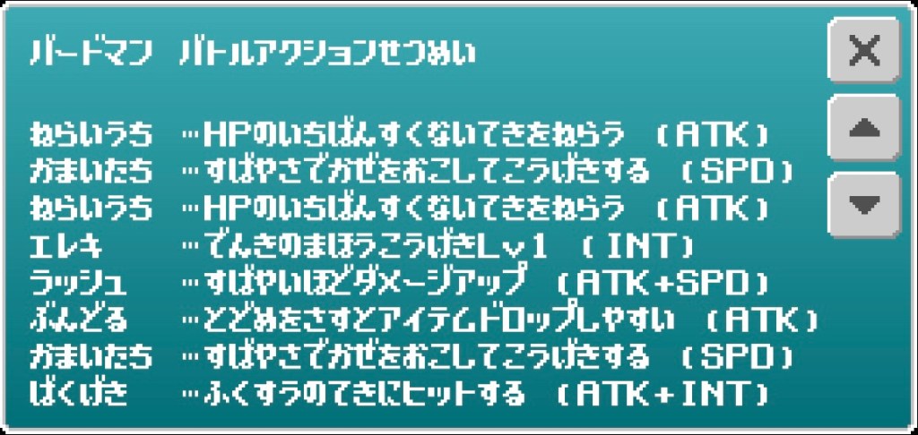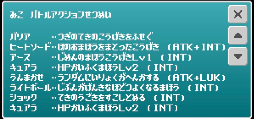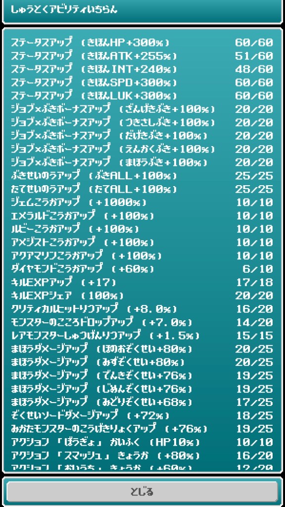 解説⑴→H2 A2 I3 S3 L5で成長。ラック寄りの技は運任せ1つ。得意武器的に魔法職なのかと思うがラック活かせた使用法が強そうなのに出来ない。